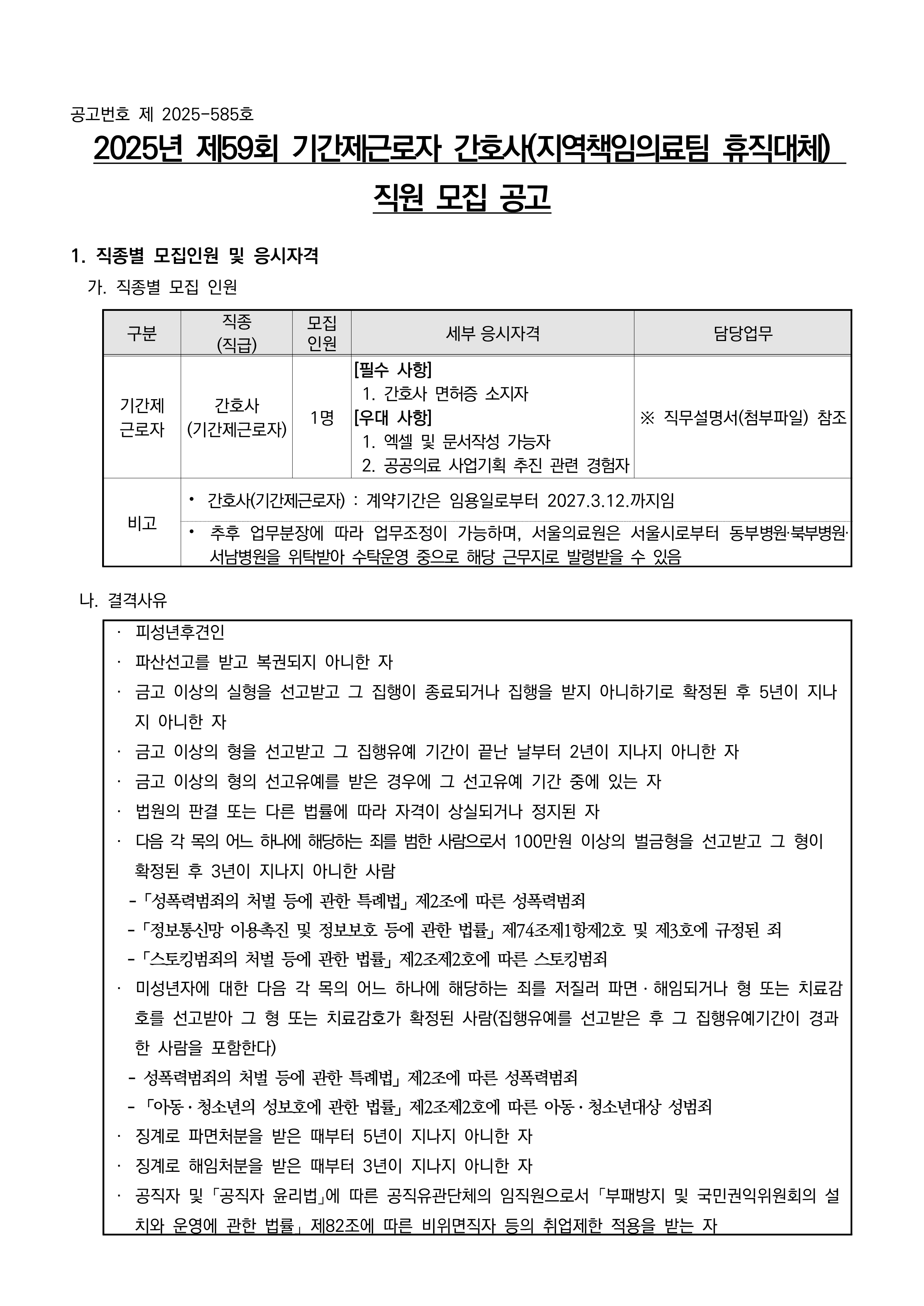 본 공고는 병원의 공식 홈페이지에서 직접 수집된 내용이에요